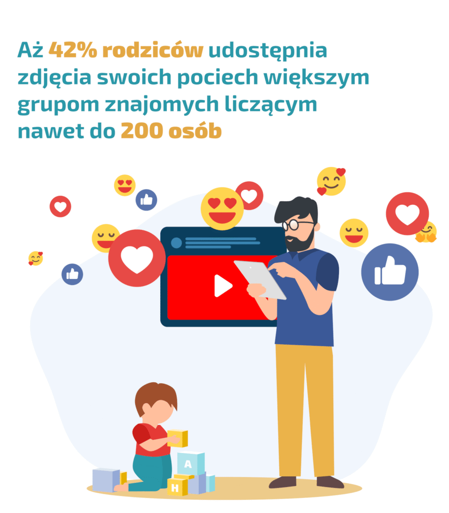 Wiele zależy od tego, komu pokazujemy zdjęcia. Aż 42% rodziców nie korzysta z ograniczeń prywatności i udostępnia zdjęcia większym grupom znajomych, liczącym nawet do 200 osób, podczas gdy 20% rodziców udostępnia zdjęcia dalszym znajomym i nieznajomym (ponad 200 osób).