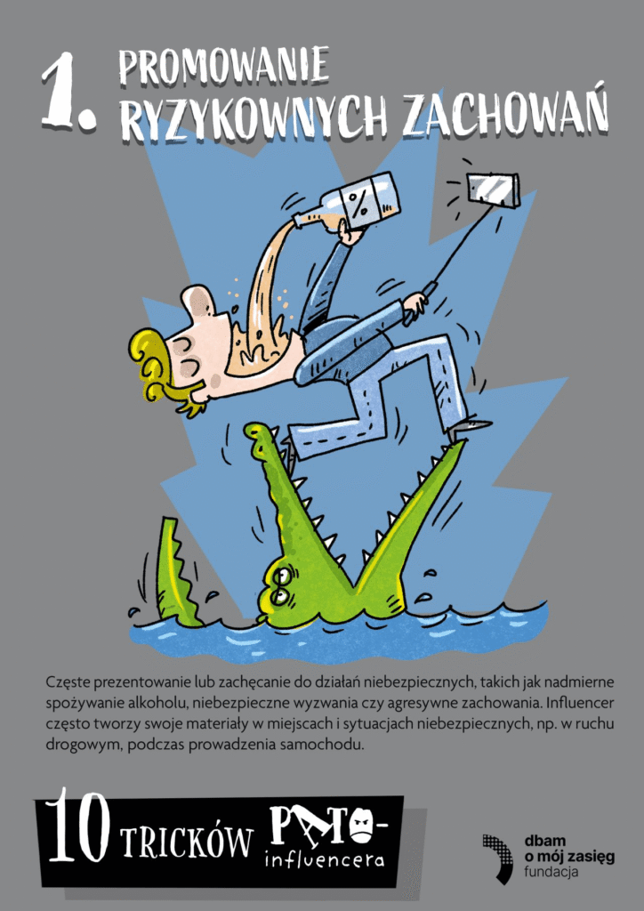 Jak rozpoznać patoinfluencera? Fundacja Dbam o Mój Zasięg wskazuje, że są to osoby promujące ryzykowne zachowania, takie jak niebezpieczne wyzwania czy wyczyny kaskaderskie bez profesjonalnego przygotowania. Patoinfluencerzy nakręcają kontrowersje, skandale, dyskryminację i hejt, nie biorąc odpowiedzialności za swoje czyny. Zwiększają w ten sposób grono odbiorców, co pozwala im czerpać zyski z reklam.