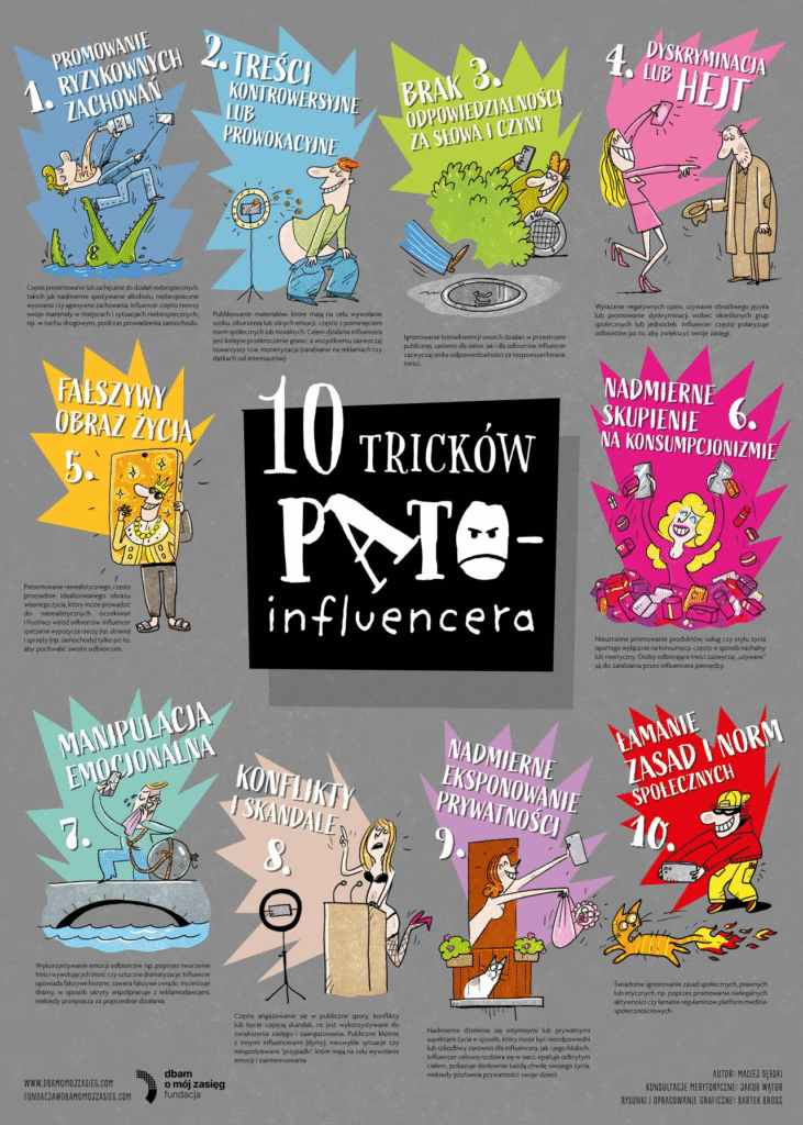 Media społecznościowe roją się od influencerów, czyli rozpoznawalnych osób z szerokim gronem obserwujących. Często mają ogromny wpływ, zwłaszcza na poszukujących autorytetów najmłodszych. Może być to bardzo groźne, jeśli dziecko zacznie obserwować i korzystać z rad osoby, promującej szkodliwe, nierealne postawy lub nielegalne zachowania – czyli patoinfluencera.